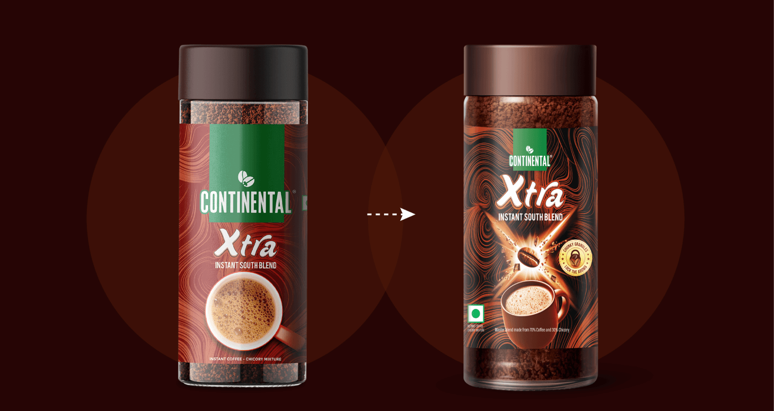 Xtra is a leading brand in the South Indian blended instant coffee market. While its packaging enjoyed strong consumer recognition, the brand's unique selling proposition – "strongest instant coffee" – was not effectively communicated. The brand aimed to reinforce this USP without drastically altering the established packaging that had fostered consumer recall over time.