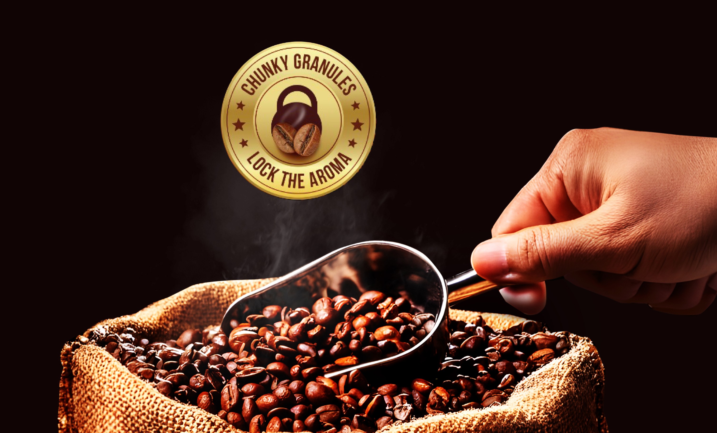 The front of the packaging now features an explosion of coffee beans, accentuated by a “blast” motif inspired by the brand's logo (X). We also redesigned the coffee mug to be more prominent, enhancing both relatability and impulse purchases at point-of-sale. The front-of-pack seal clearly articulates the reason-to-believe: Chunky granules lock in the aroma. The background pattern has been enhanced to visually depict the mixing of coffee and milk. The back of pack carries the same design look, with mnemonics on coffee preparation and product story.